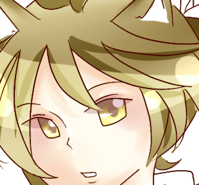 ベースは黄色で、上にいくほど濃くなるようグラデーション。目の上方の縁がアニメ塗りになっているのはアナログの時の癖です。果たしてそれでいいのか...ですがあくまでも自己流!